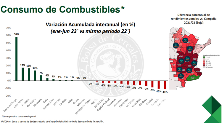 Un estudio realizado por la Bolsa de Cereales destacó que en las provincias donde el campo es la principal actividad económica se derrumbó el despacho de gasoil, contrariamente a las regiones donde no predomina la producción agraria.